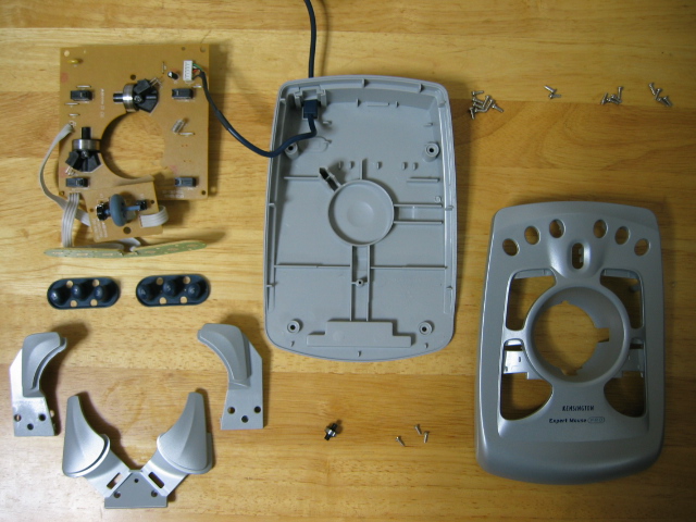 4つのクリックボタンは本体カバー側にネジ止めされています。このネジだけはここまでのものより小さいネジを使っていました。