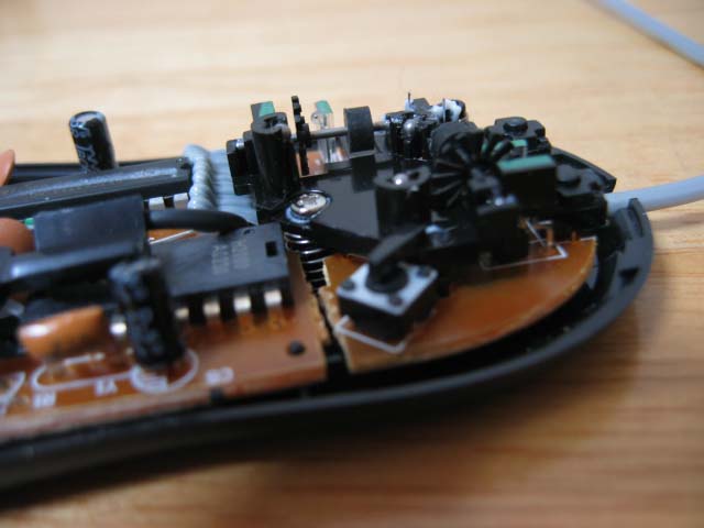 ボールは、3つのステンレス球で支えていて、ゴムローラーとロータリーエンコーダで回転を検知する、ごく普通のトラックボールです。