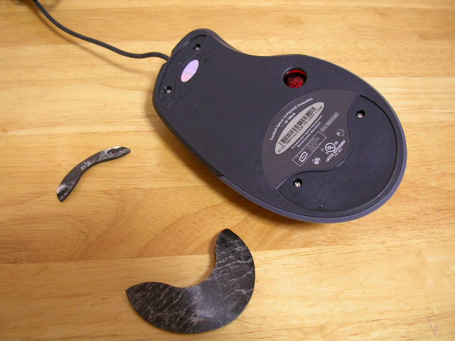 左右クリックのスイッチは定番のオムロンD2F-01。第3と第4ボタンは小型のタクトスイッチというこれまたお手本のような作りです。