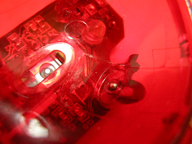 擦れている部分に一番近いステンレス支持球をおわんの裏側からはんだごての先で攻撃。ステンレス球を取り外します。